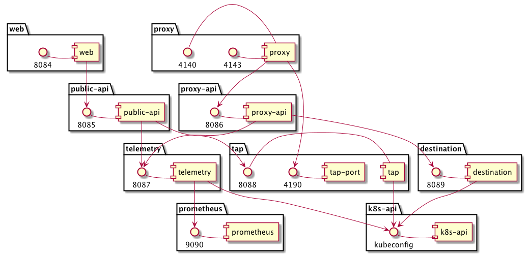 为Proxy提供服务发现功能, 支持k8s的目标机制, 接收<service>.<namespace>.svc.cluster.local:<port>格式的请求, 返回地址集.