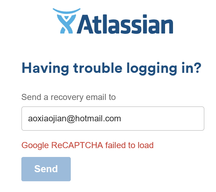 特别提醒:Atlassian 的网站采用了一种名为"人机身份验证"的程序来保护自己,避免被攻击。这个程序采用的是 Google ReCAPTCHA ,因此对于大陆的同学可能因为被墙而无法使用,报错如下: